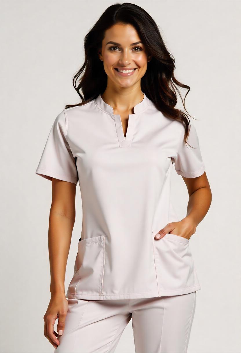 Be unique in this modern scrub top with Mandarin collar. Contemporary fit.
